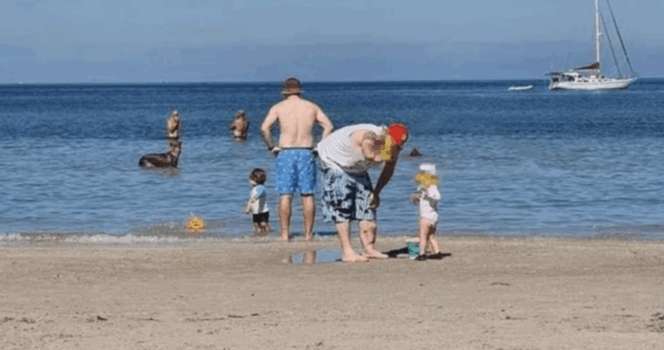 «Era la primera vez que su pequeño iba a la playa, y la pareja del hombre tomó un par de fotos para inmortalizar el día.»